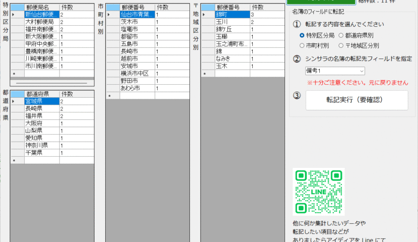 郵便番号から人数を調べる「郵便発送用・棚卸ツール」