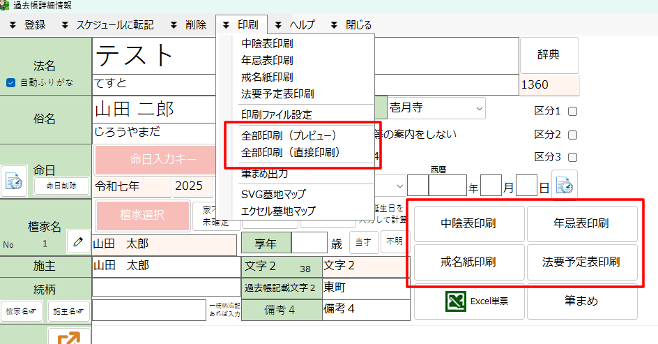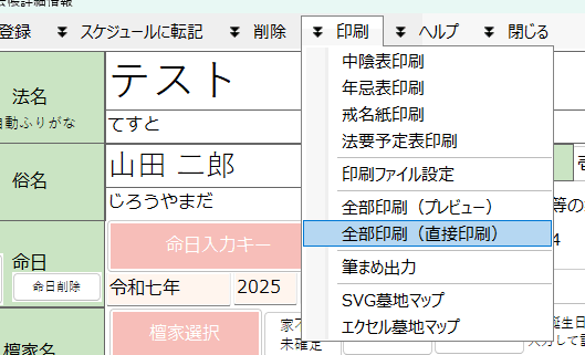 以前からご要望をいただいておりました『過去帳画面での中陰表などのボタンを全部印刷もしくは同時にプレビュー』機能を作ってみました。
