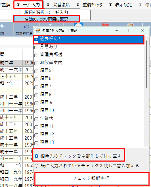 (3)抽出されたら、その状態で名簿のチェック項目「過去帳あり」に転記