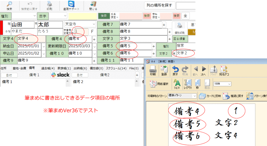 例:名簿からの筆まめ出力で「備考4」を印刷したい!という時は