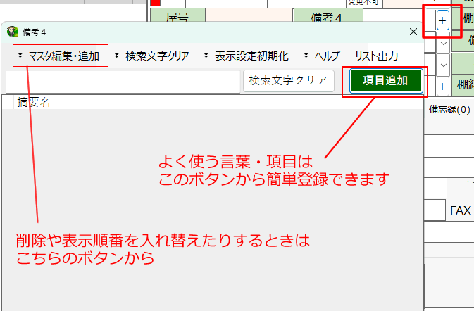 2026/1/8 追加開いた画面で「項目の追加」で語句を登録できます。