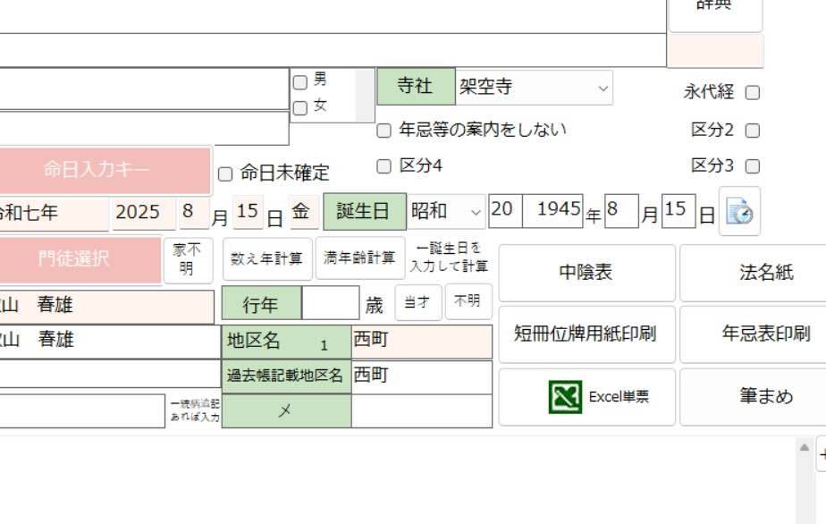 シンサラでは、過去帳および現在帳にて、誕生日を「西暦の直接入力」でもできるようになっています。