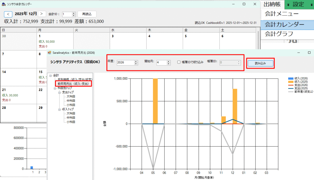 - 「会計カレンダー」「会計グラフ」を追加しました