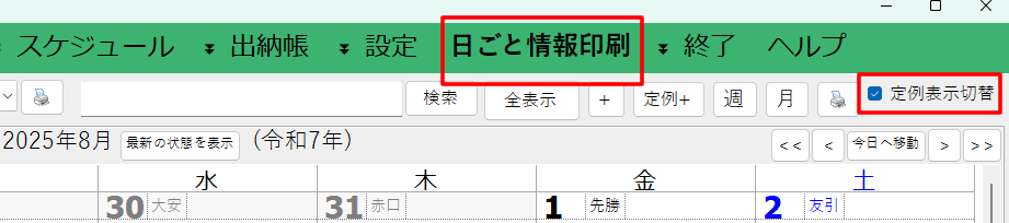 (1)月参りデータがカレンダーに表示されていなかったら「定例表示切替」に印を入れてください。