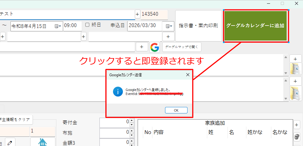 昨日、グーグルカレンダーAPIをさわったので、ついでに『書き込みだけ』できるようにしました。