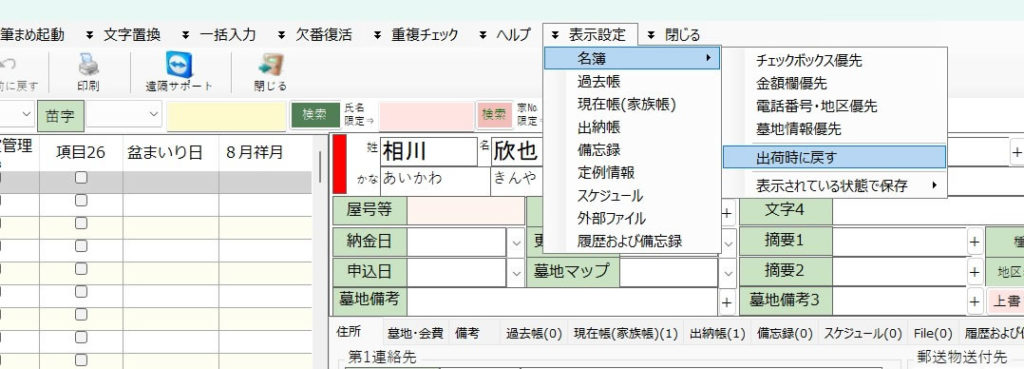 ※表示設定初期化とは、具体的には、バックアップとして作っているxmlファイルを作業用フォルダに読み込む、、、という処理のことです。データには関係ありません。例えば、名簿の横の並び順を出荷時に戻すときも行なっていただけたらと思います。
