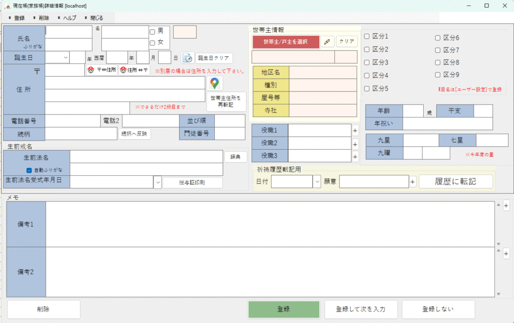 現在帳で誕生日の西暦入力をご利用の方はサラノートをお使いください。(※インストールいたしますのでご連絡ください。)