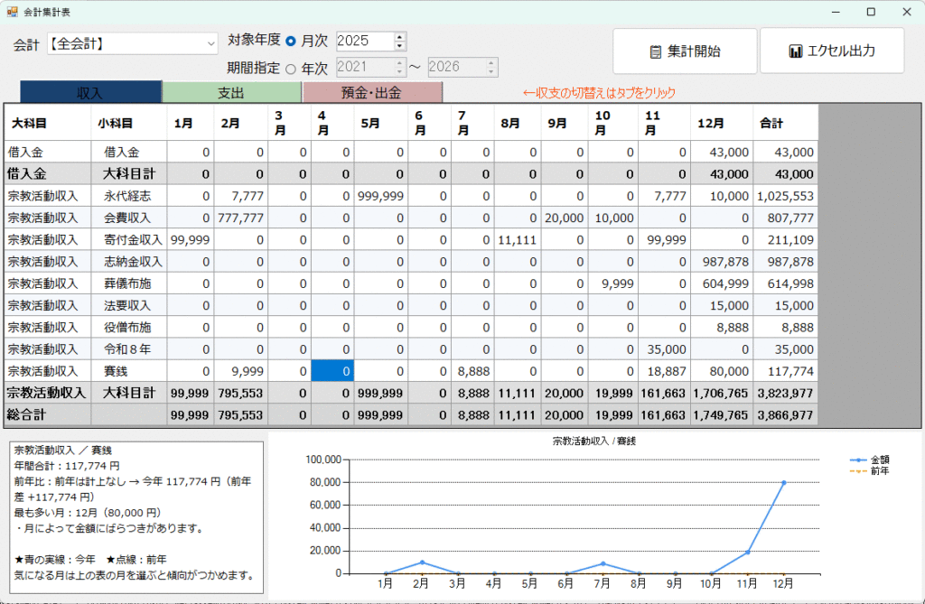 (5)データベースを統一⇒「会計をまたいだ」集計ができます。