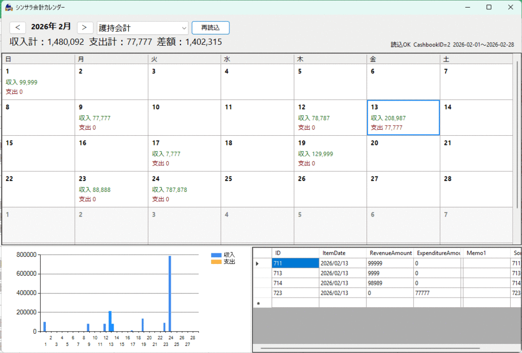 複数人数で操作する場合、他の収支科目を見る会計にはパスワードをかける、、、ということができます。